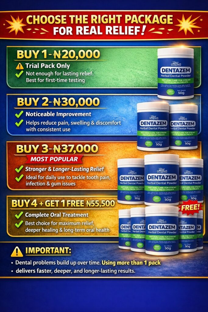 🔥 BUY 3 – ₦37,000 (MOST POPULAR) ✔✔ Stronger & longer-lasting relief Ideal for daily use to tackle tooth pain, infection & gum issues.